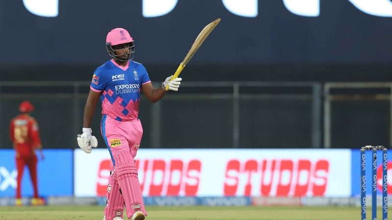 Samson walked in once Ben Stokes departed in the third ball of the chase and saw his side tottering at 70/3 in the eighth over. He then forged a 53-run partnership with Shivam Dube and put on 52 runs with Riyan Parag steering his team towards the steep target of 222.
