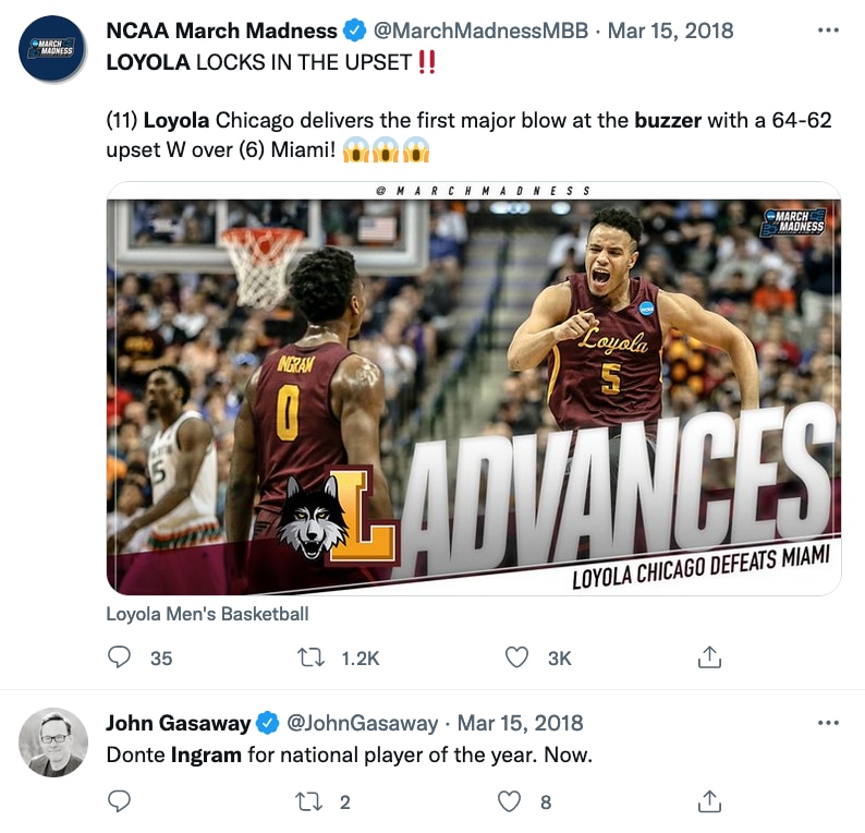 One at a time, they held and kissed the trophy while the other players picked up handfuls of confetti that had fallen and threw it in the air to let it slowly flutter to the ground once again. Because while they’ve gone from the Missouri Valley Conference champs to arguably the biggest story in sports in a matter of two weeks, the Ramblers, just like anyone else, can’t pass up the chance to share their latest achievement on social media.