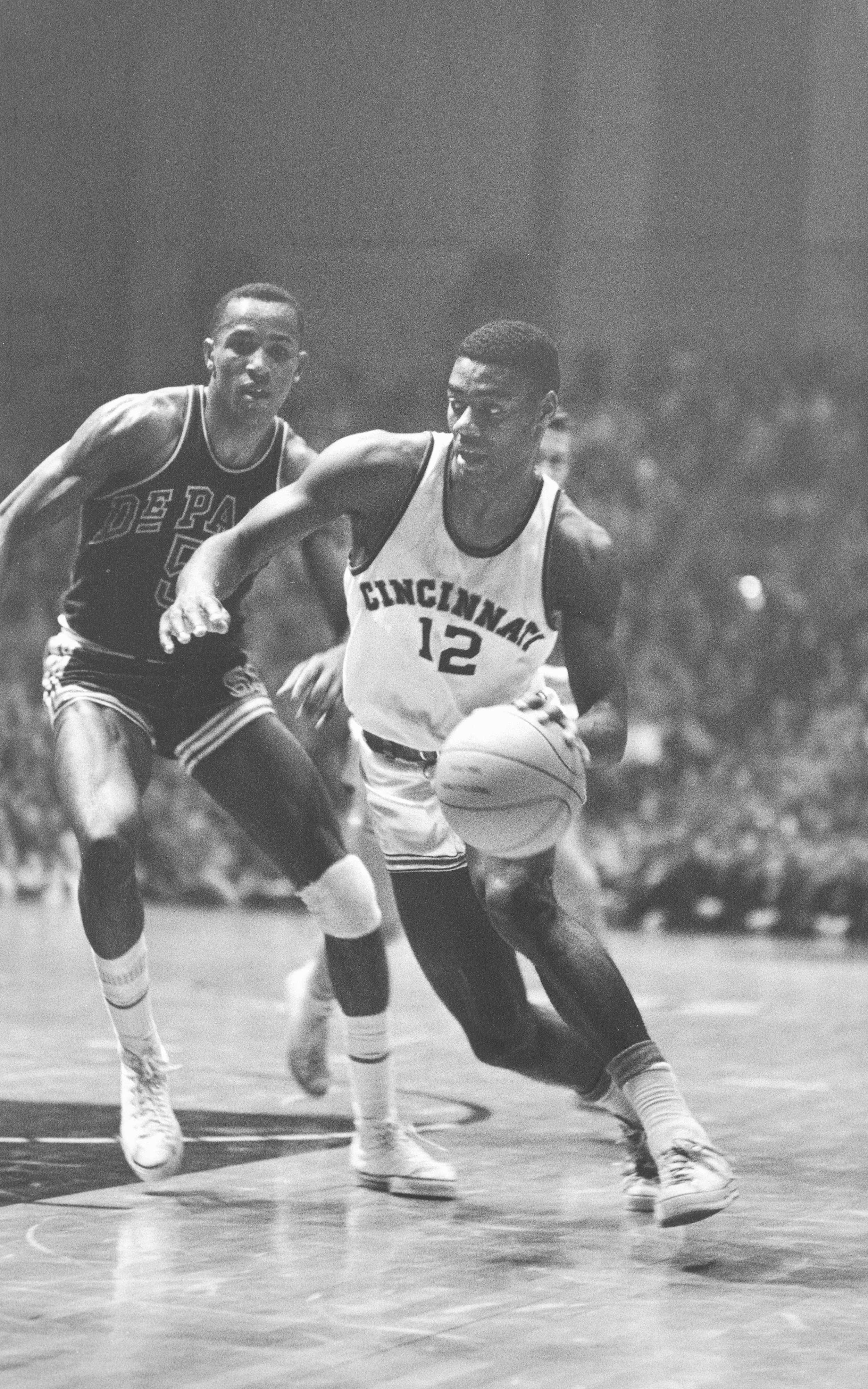 Robertson, 6-5, was a masterful dribbler with both hands and he had a wide array of shots in his arsenal. "He gets (Cincinnati) from any place and with any method," wrote Jimmy Breslin of the Newspaper Enterprise Association. "A two-hand set (shot) from the outside, a fall-away jump, a straight up and down jump, from the pivot, long stepping drives – complete with up-setting fakes – for layups."