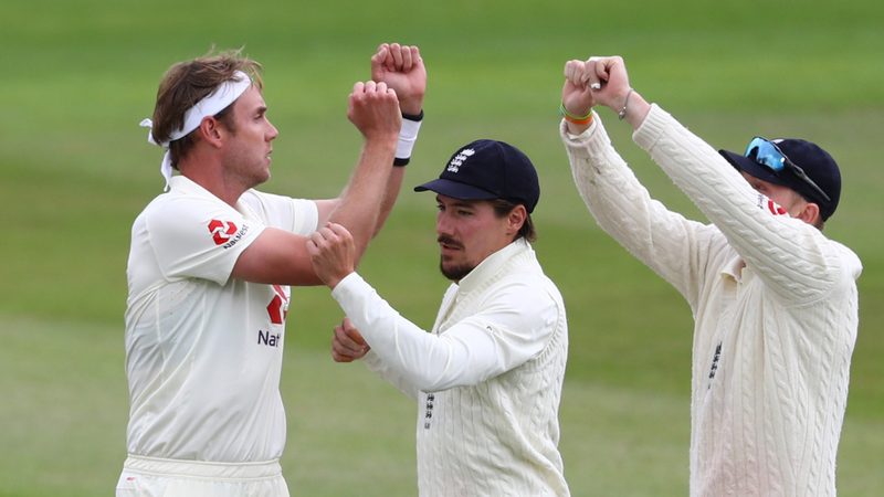 Broad, controversially omitted from England's first-Test loss at Southampton, had Roach caught by first slip Root for a duck and Rahkeem Cornwall lbw for 10.