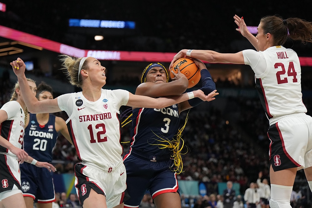 Frontcourt play was a big question for UConn entering this game. After losing Dorka Juhasz to a wrist injury in the Elite Eight, the Huskies seemed to be outmatched going in against a very lengthy Stanford team. Not only did Aaliyah Edwards and Olivia Nelson-Ododa step up with a combined 18 rebounds, but the whole team also pitched in with another 38 for a grand total of 46 — nine more than Stanford.