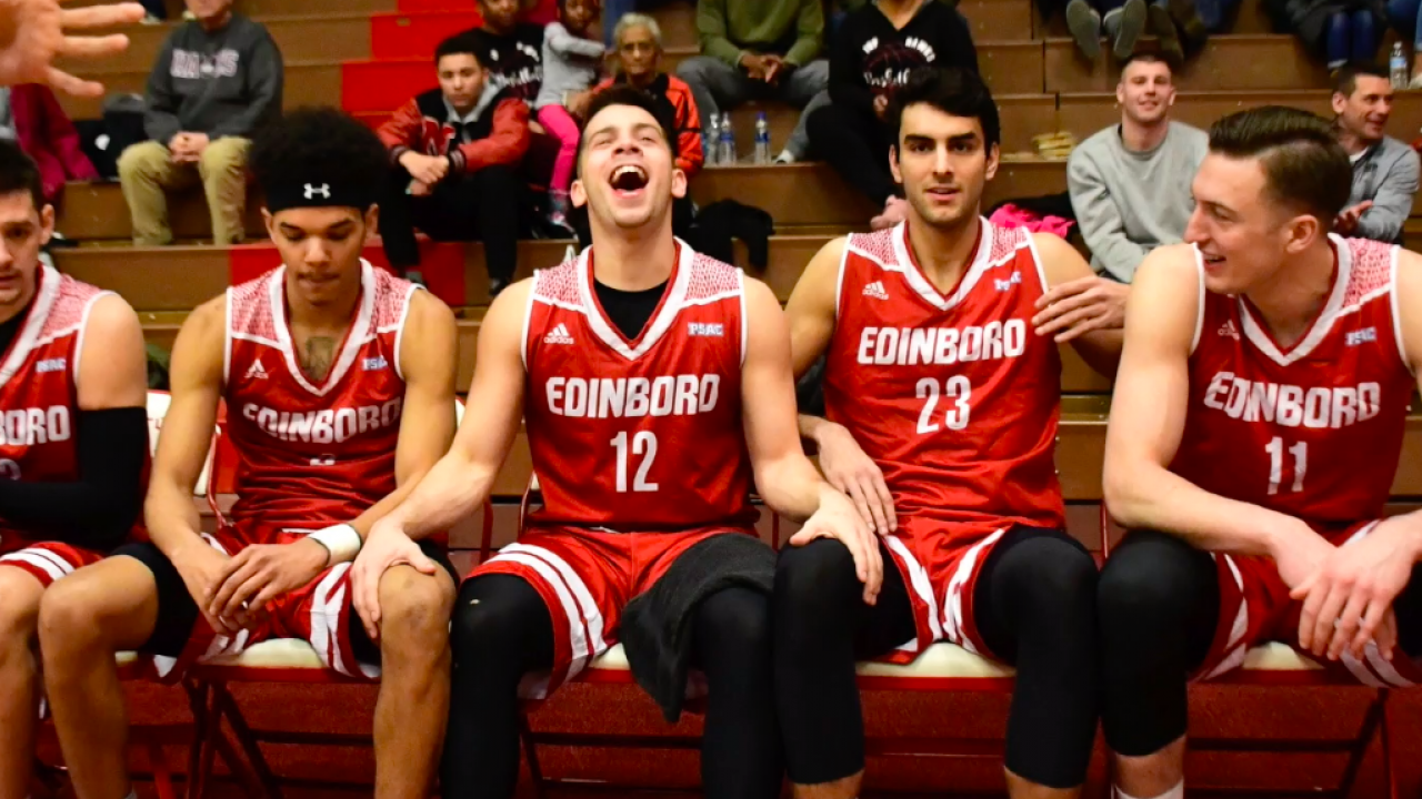 Awkward. IUP forgot to bring their uniforms to tonight’s game in Edinboro. So IUP (pictured) will be wearing Edinboro’s old red unis. Edinboro will be in Edinboro white