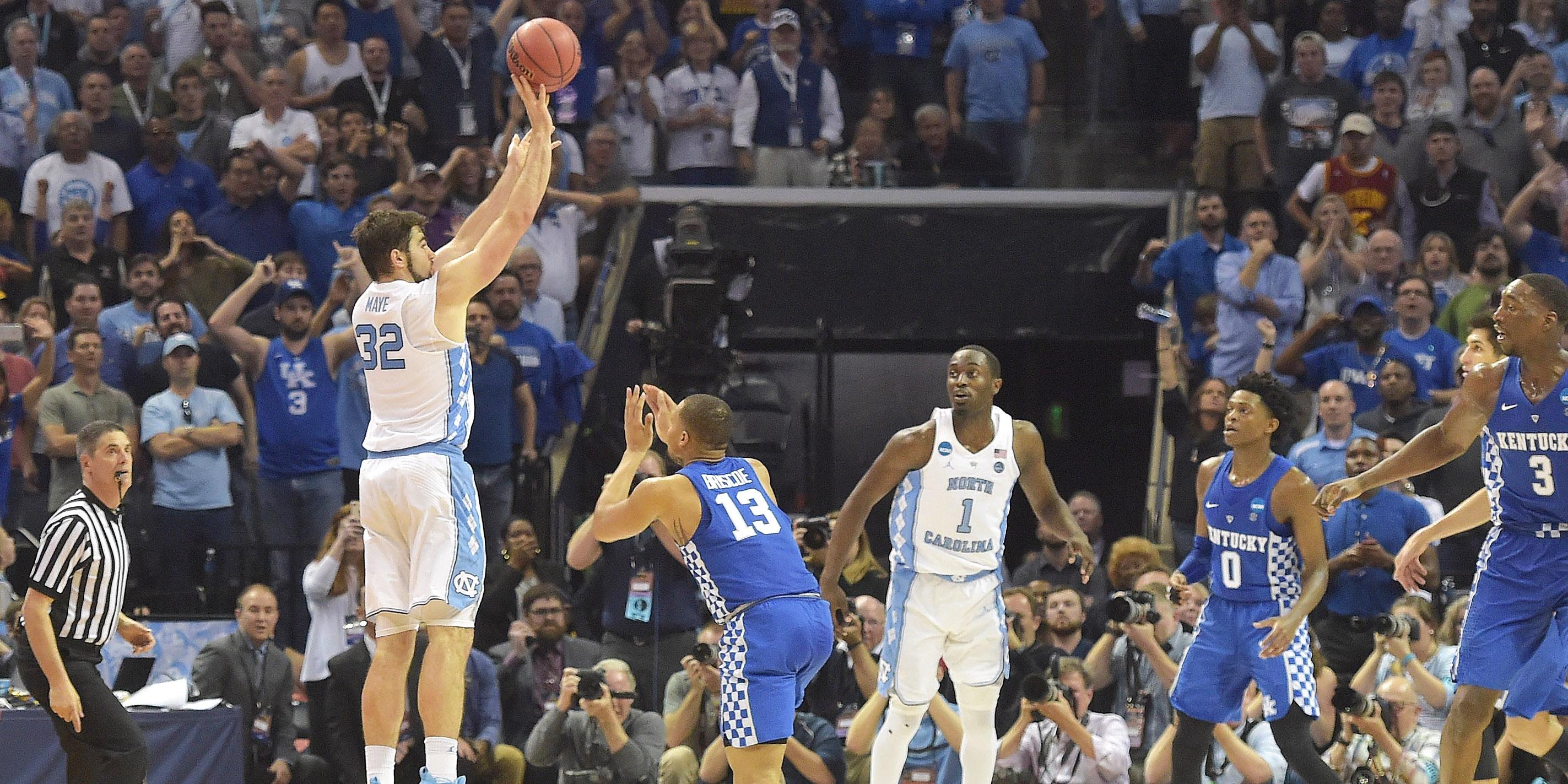 But Luke Maye, the UNC walk-on, had an answer. With 0.3 ticks left, the sophomore drained as deep of a 2-pointer as you can take, sending the Tar Heels to their 20th Final Four, and their second in a row.