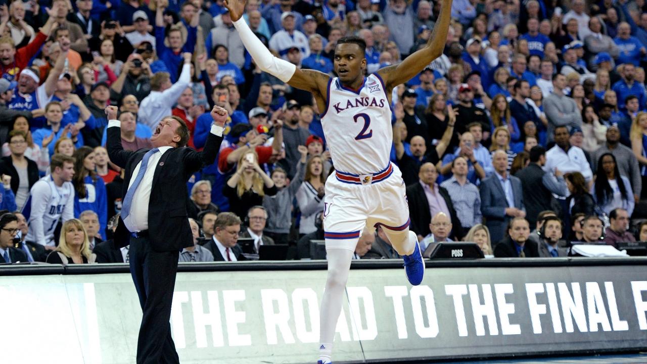 Kansas, a prime and shining example of how fragile fate has been the past two weeks. Had Grayson Allen’s would-be winning shot for Duke not rolled in and out at the regulation buzzer Sunday, the Jayhawks would have been three-peat Elite Eight losers, while Bill Self would be 2-8 in regional title games. He’d be answering an entirely different set of questions now.