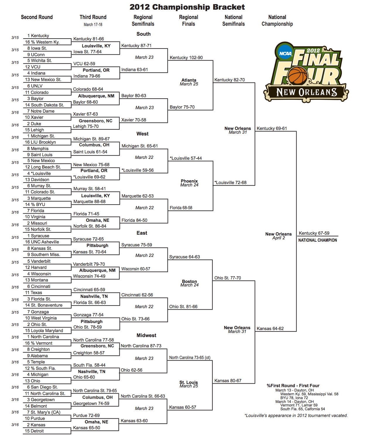 * โ€” Louisville's participation in the 2012 NCAA tournament was later vacated.