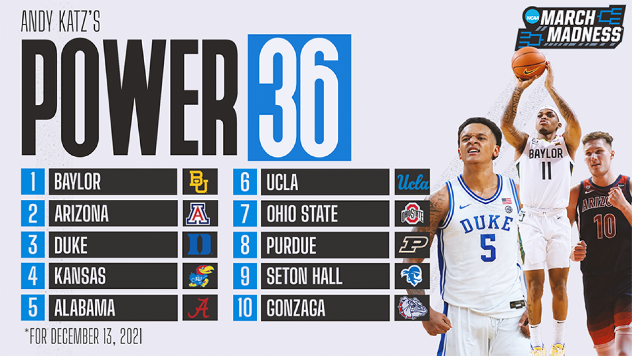 Baylor takes No. 1 spot in latest Power 36 men's college basketball rankings