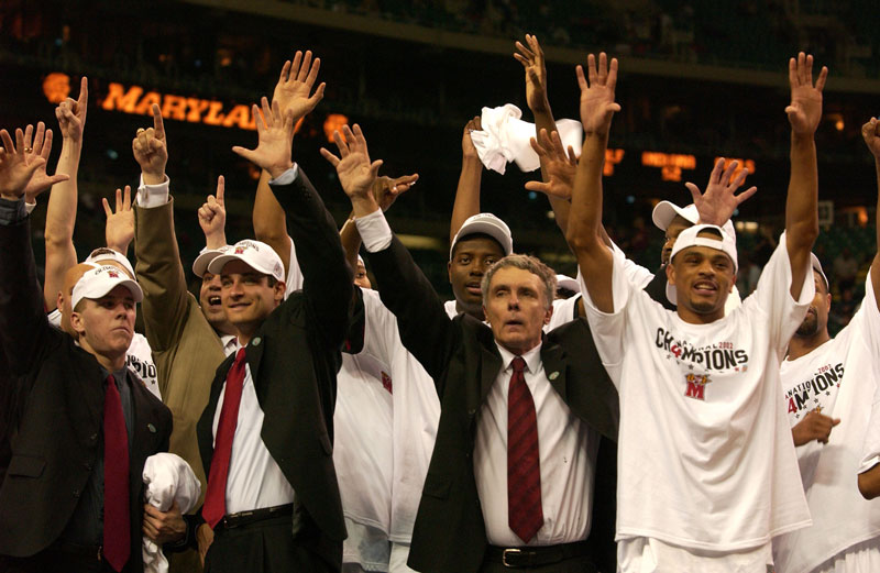 Rollie Massimino cuts the nets after Villanova, the only 8-seed ever to win in a 64-team tournament, shocked Georgetown.