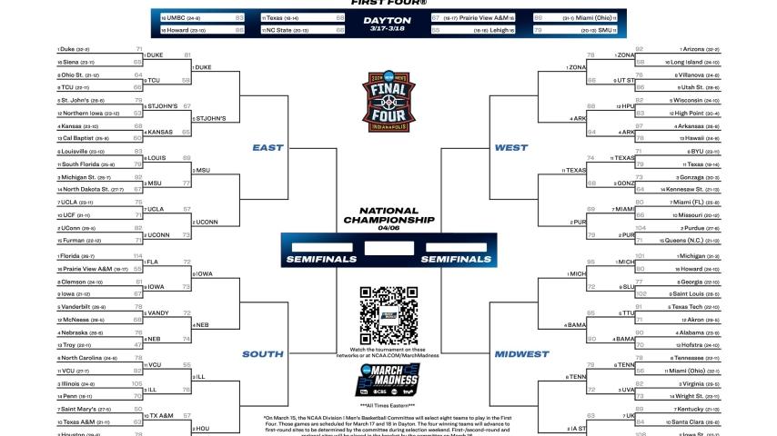 Check out the full March Madness tournament schedule below. You can also print out a bracket here.