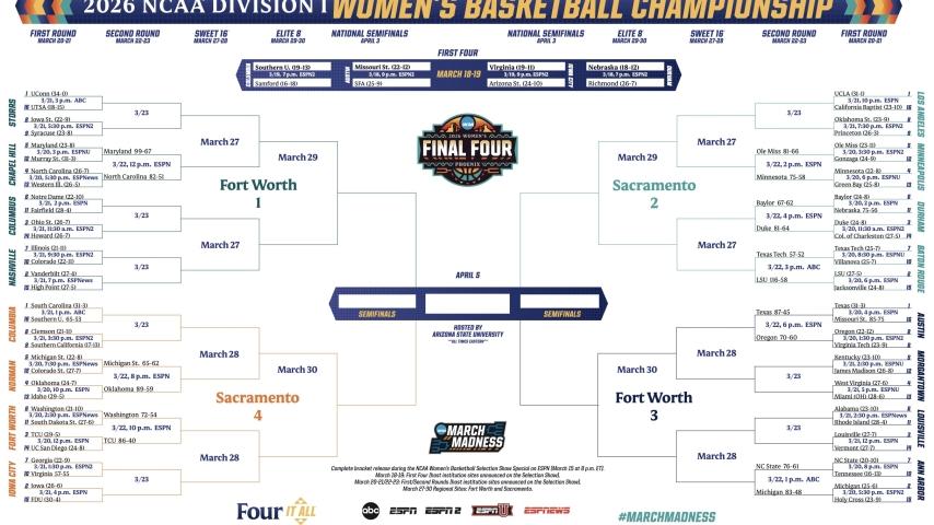 2026 NCAA women's basketball tournament: Bracket, schedule, scores