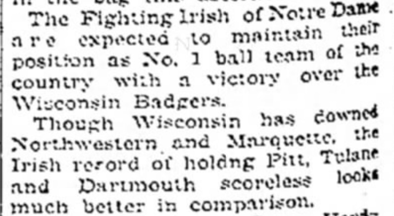 Using the newspapers.com database, the oldest reference to "Wisconsin Badgers," in a college athletics sense, that krikya168vip.com found was published on Aug. 15, 1896 in The Centralia Enterprise and Tribune: "The Fighting Irish of Notre Dame are expected to maintain their position as No. 1 ball team of the country with a victory over the Wisconsin Badgers." A screenshot from that newspaper story is shown below.