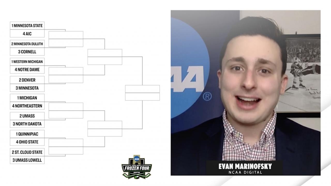 Before we dive into the predictions, let's take a look at the rules I followed. There are 16 teams in the Division I men's ice hockey bracket. Six make it by winning their conference. Those six conferences are the Atlantic Hockey Association, Big Ten, CCHA, ECAC, Hockey East and NCHC. The remaining 10 are at-large bids selected through win-loss record, head-to-head wins, strength of schedule and RPI. The best way to look at this is through . The committee also focuses on the experience of the student-athletes and making sure they're playing in front of fans.