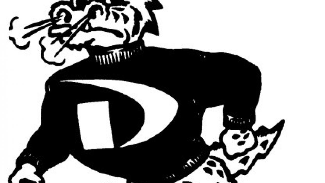 Not the original Drexel Dragon, but one of the first. A fuming dragon wearing school-branded apparel is definitely a good mascot. This logo existed before the dragon even had a name! (It's Mario.)