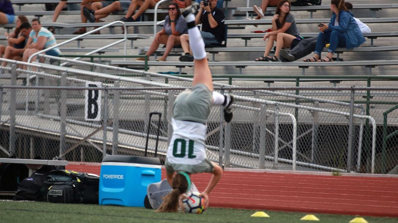 To start, imagine performing a somersault. Now, instead of a cushioned surface, the ground is the base of the movement and the primary balancing tool isn't your hands, but rather a round, uneven ball. The momentum generated from the somersault is transferred into launching a soccer ball more than 40 yards while successfully landing feet first. Here’s how Illinois defender Alicia Barker does it: