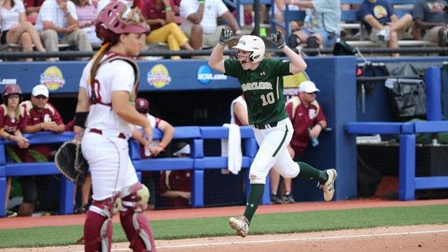 Strickland hit her 13th homer of the year to put BU up 3-0 in the second. In the sixth, another two-run shot gave the Bears a 7-2 lead. The hot bat is no surprise; after the 2-for-3 performance with four runs driven in against FSU, Strickland is 10-for-23 (.435) with eight RBI this postseason.
