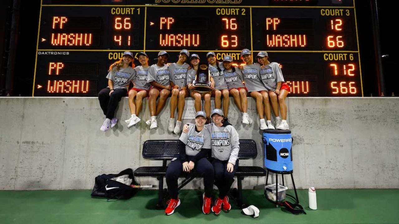 WashU won the 2025 DIII women's tennis team national title, defeating Pomona-Pitzer, 4-3. Junior Nina Moravek defeated sophomore Leticia Bazua Vazquez to cement the victory — the program's first-ever national championship.