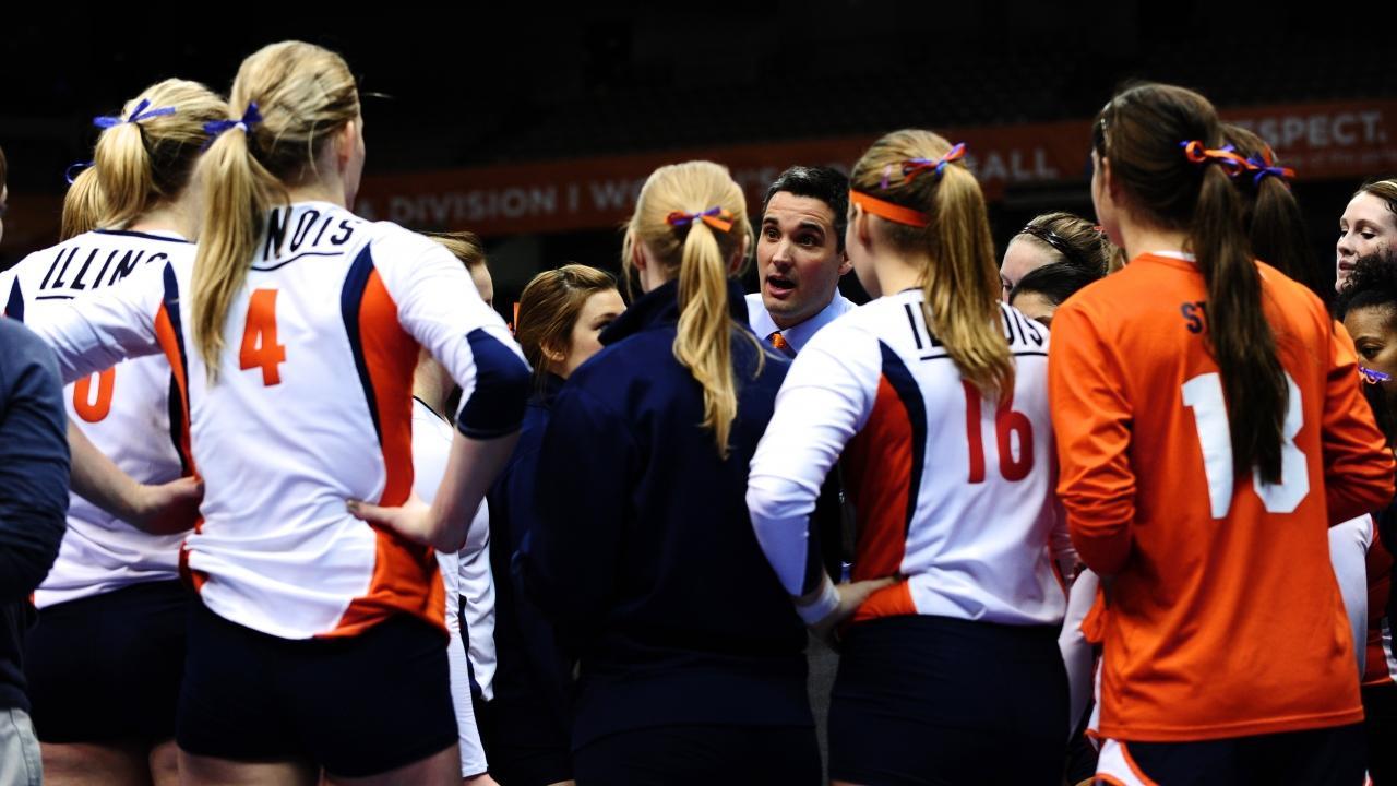 Hambly (center) was voted AVCA Coach of the Year with Illinois in 2011.